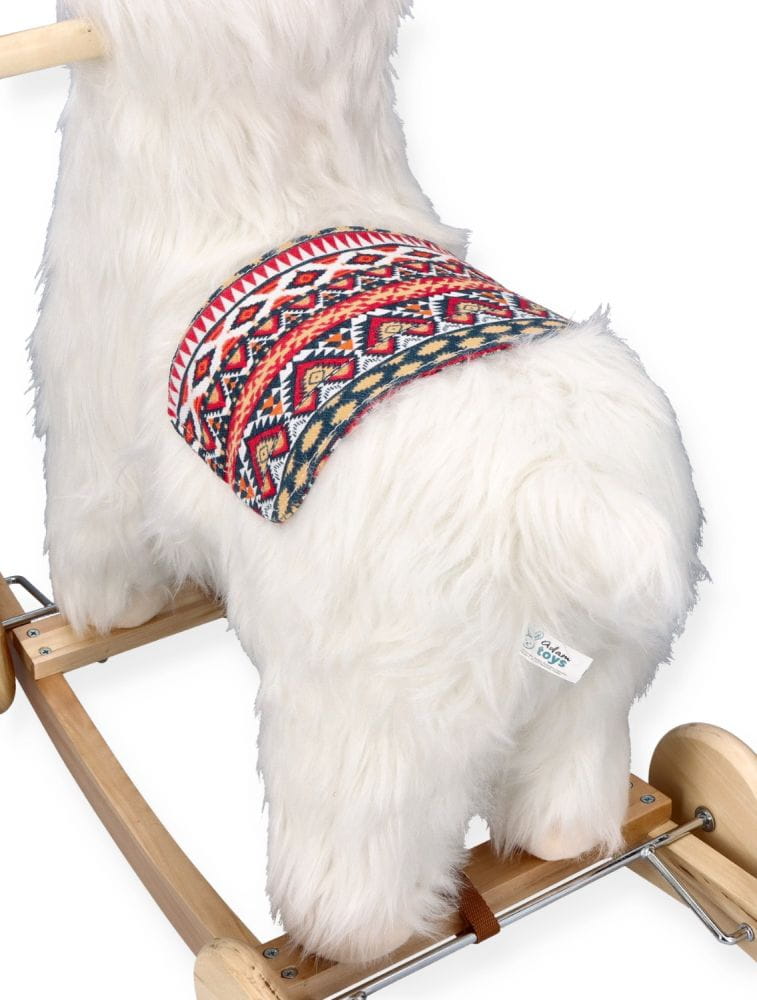 Alpaka pokryta jest delikatnym, pluszowym materiałem. Ma starannie wykonany pyszczek, kolorowe siodło i słodkie kopytka – wszystko z dbałością o każdy detal