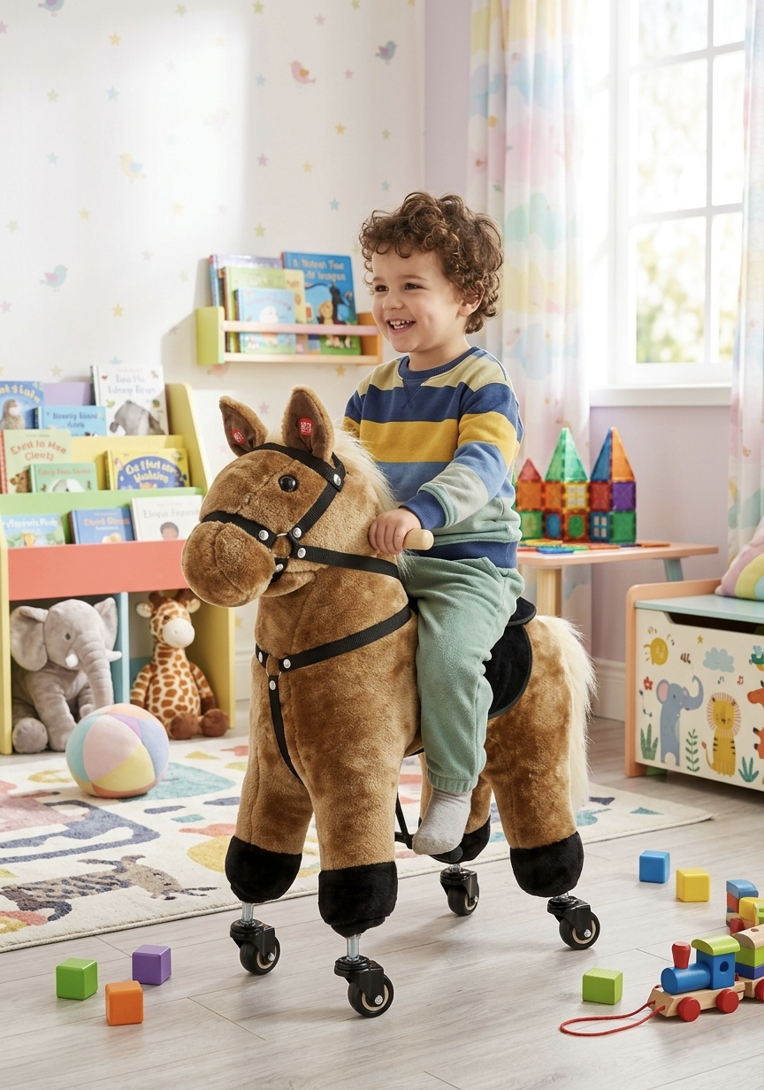 Poznaj wyjątkowego brązowego konika na kółkach – zabawkę, która dostarczy Twojemu dziecku mnóstwo radości i niezapomnianych chwil zabawy.
