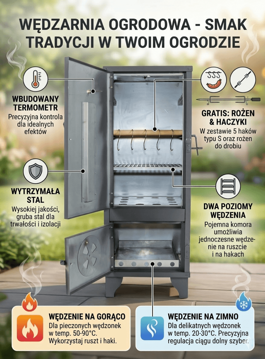 Solidna konstrukcja, wygodna obsługa oraz możliwość wędzenia na gorąco i na zimno sprawiają, że jest to idealna wędzarnia zarówno dla początkujących, jak i doświadczonych miłośników domowego wędzenia.