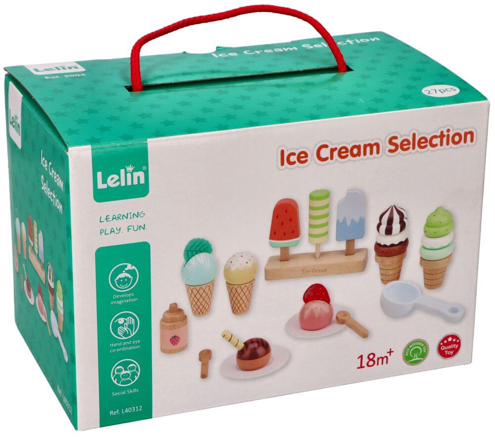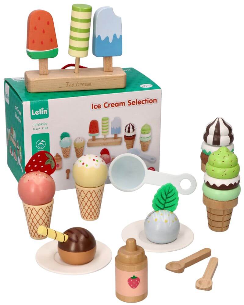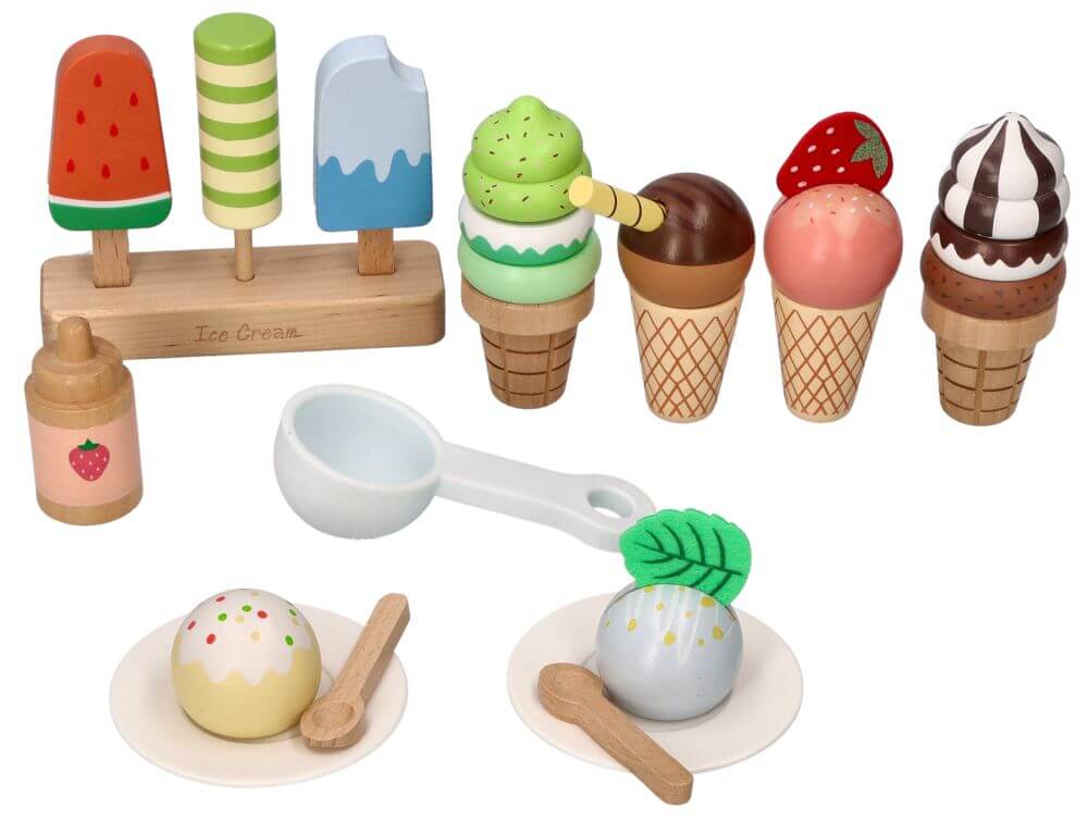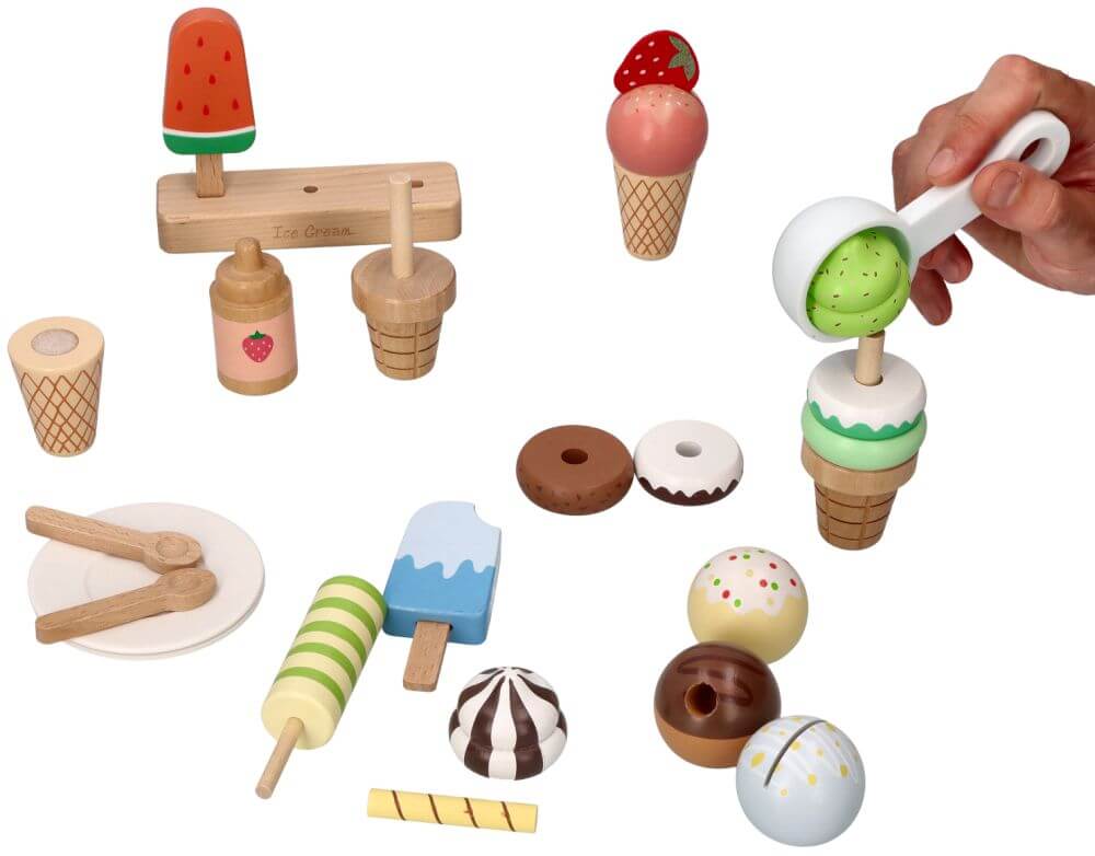 Drewniany zestaw do serwowania lodów 27 el. – kreatywna zabawa dla dzieci