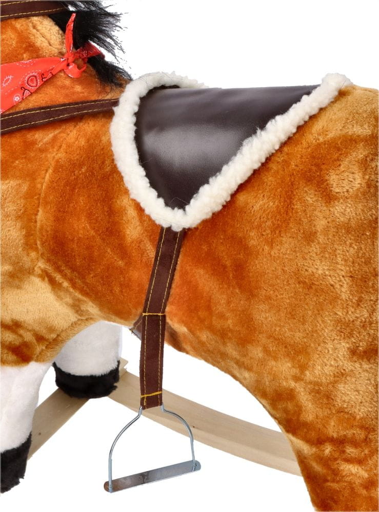 Drewniane płozy dodają konikowi estetycznego uroku, sprawiając, że staje się nie tylko funkcjonalną zabawką, ale również pięknym elementem wystroju dziecięcego pokoju.
