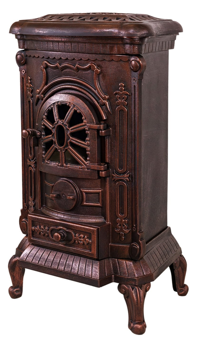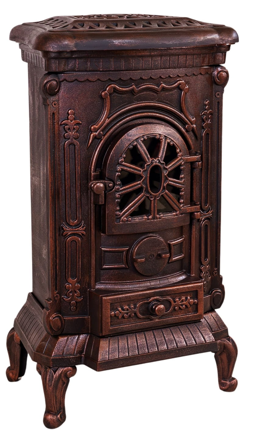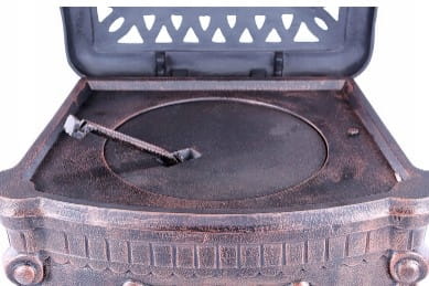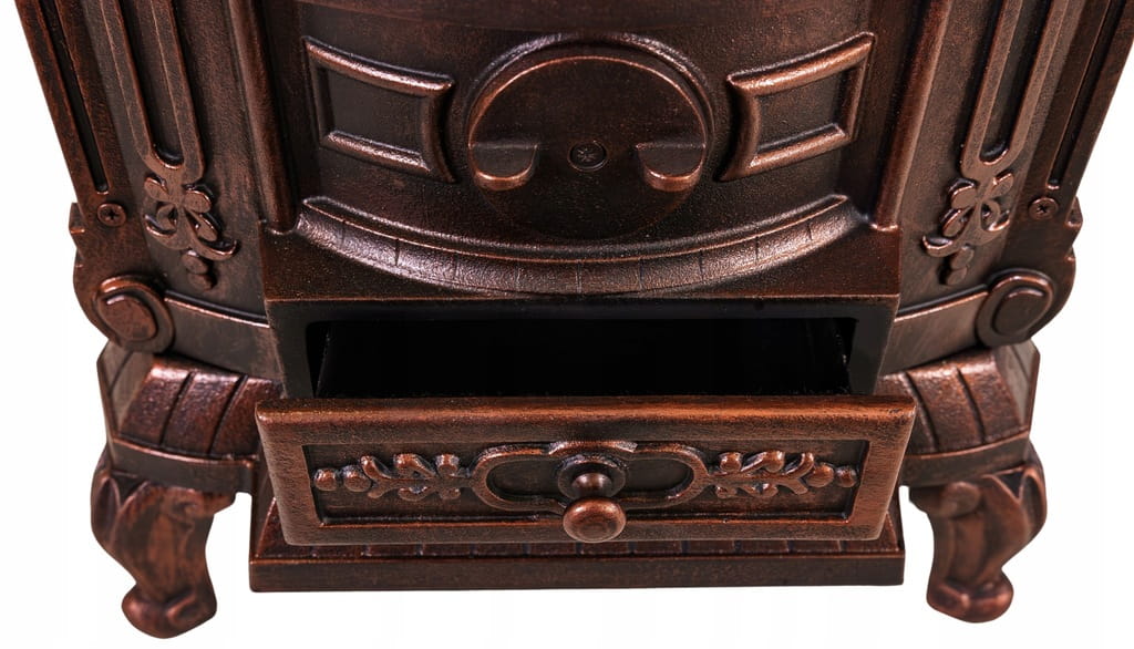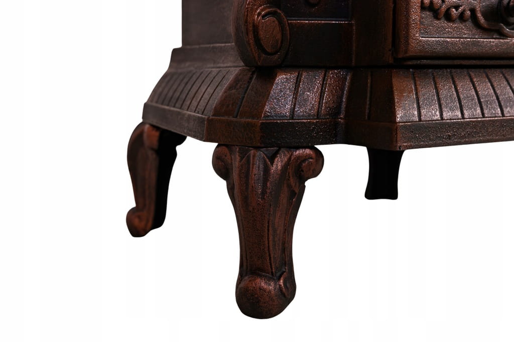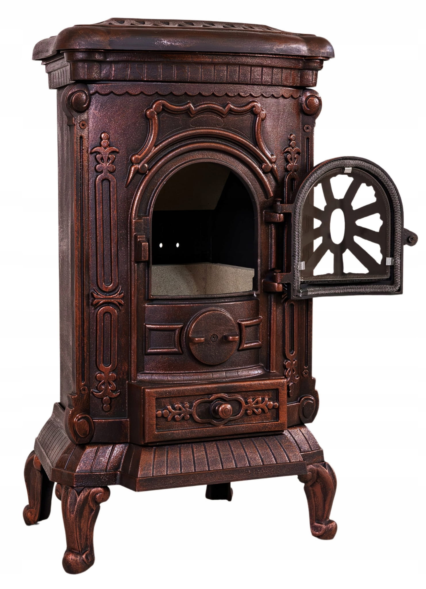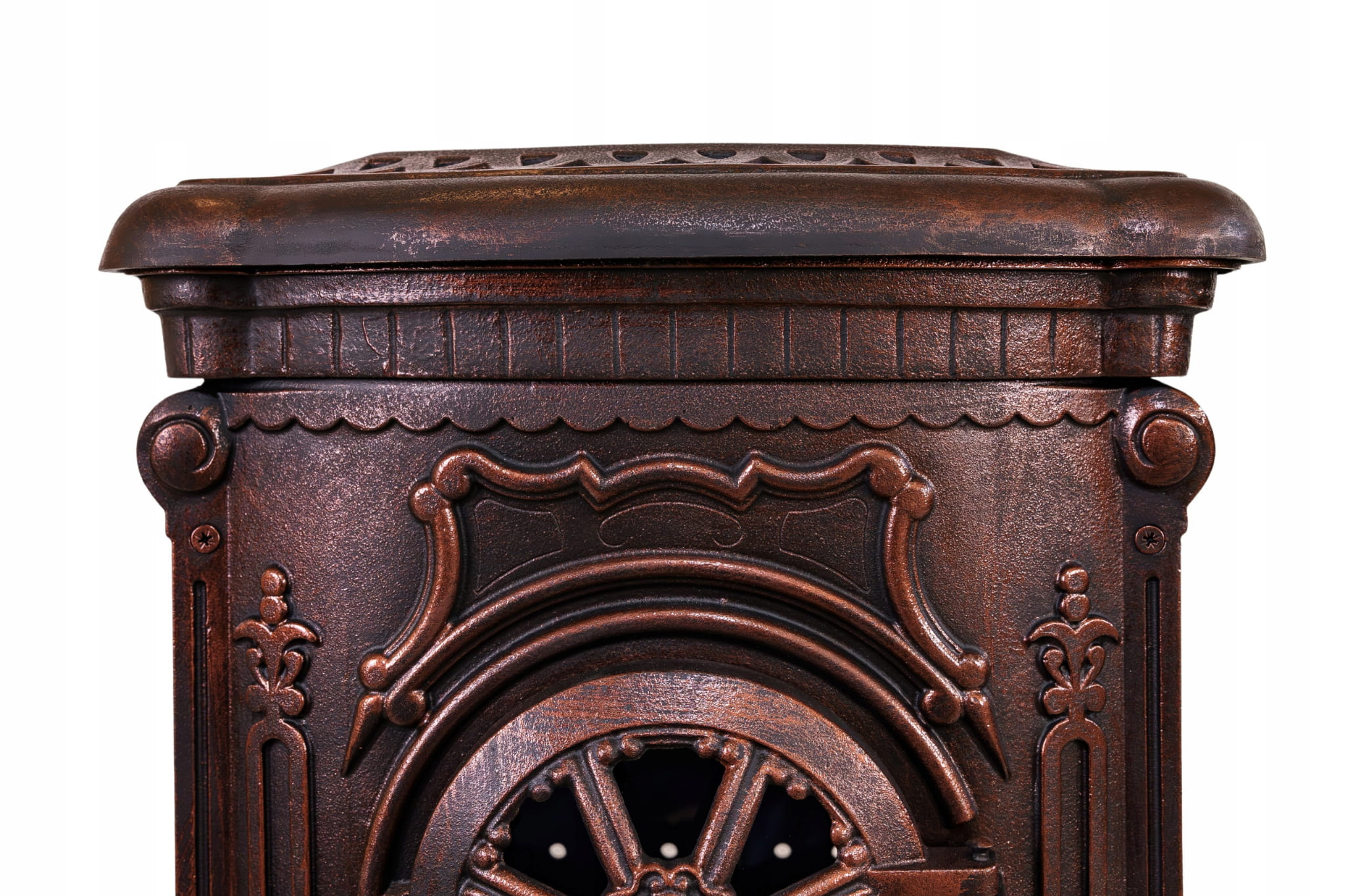 PIec wolnostojący kominek AMBRA żeliwo zdobiony miedziany