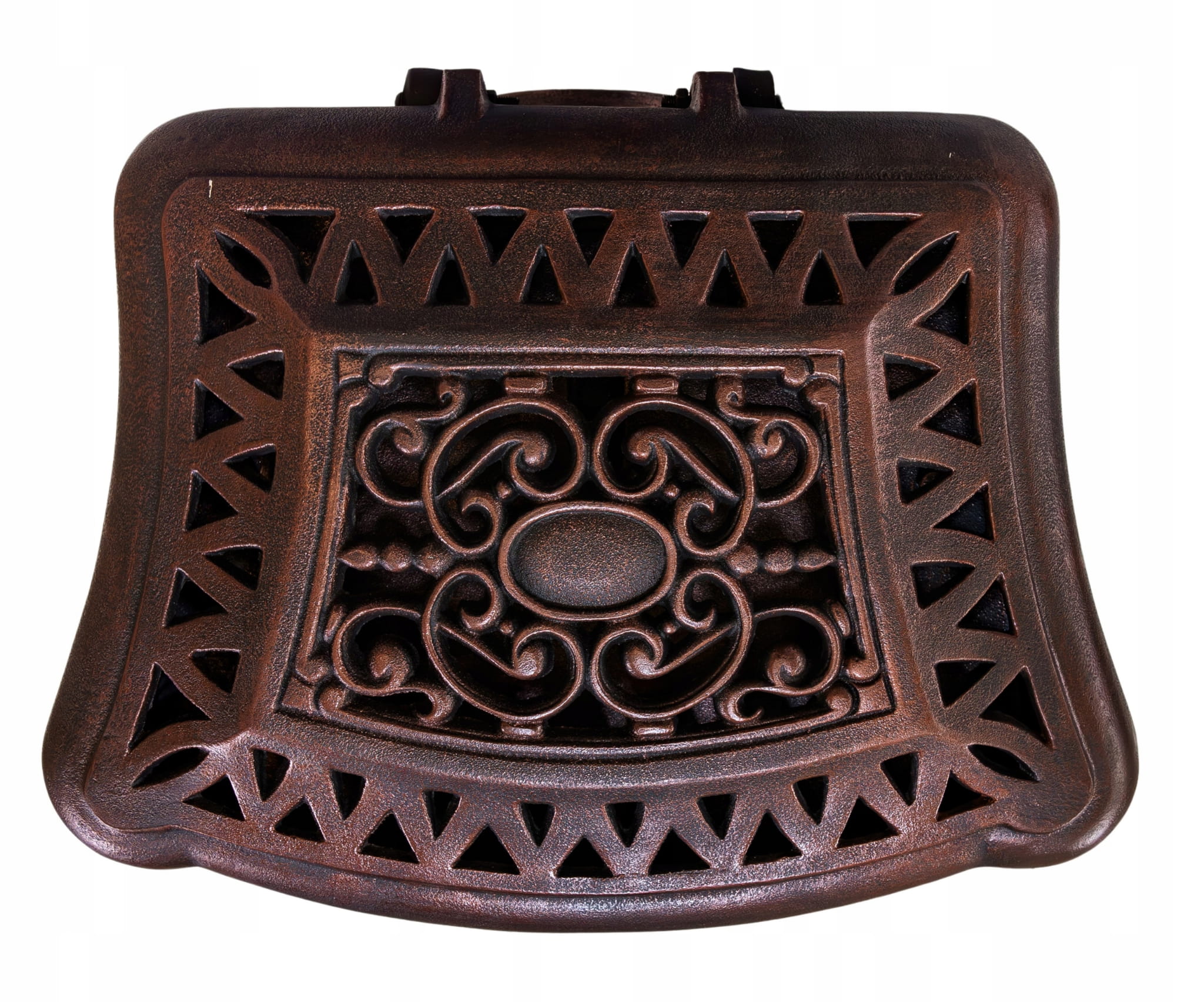 Piec żeliwny wolnostojący kominek AMBRA zdobiony miedziany