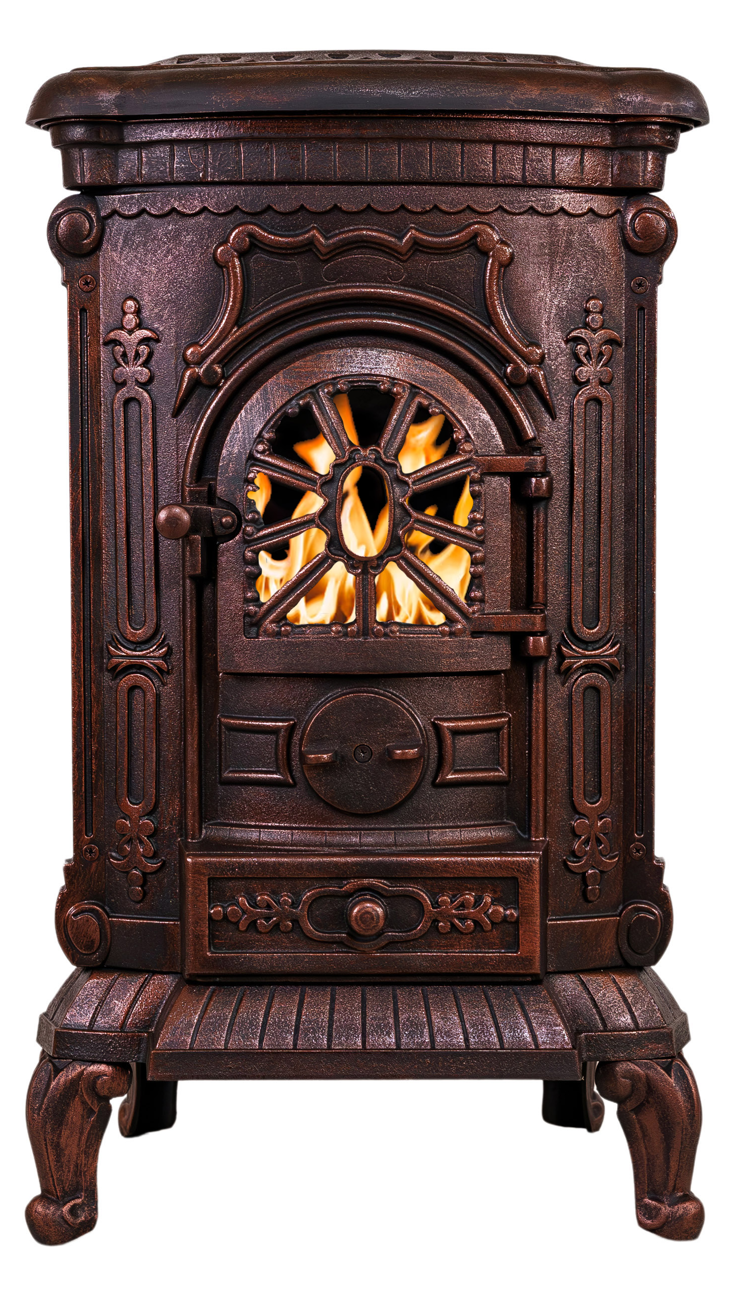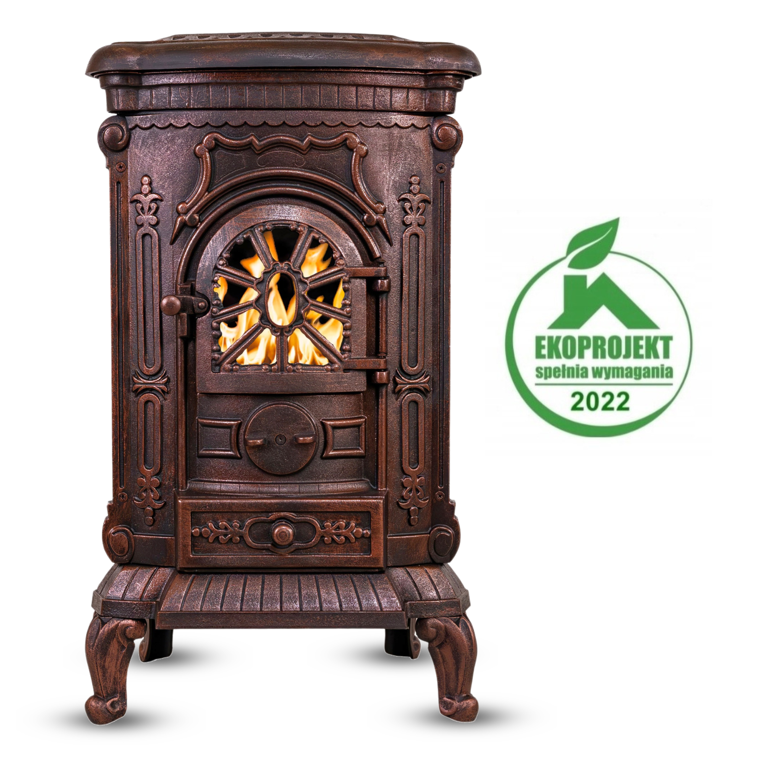 Żeliwny piec wolnostojący AMBRA Miedziany 6,5 kW – stylowy piec na drewno zgodny z Ekoprojektem
